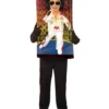 Battle enemies and win the heart of your queen in this Elite Viking Warrior costume which comes with everything you’ll need for the Halloween part including a tunic, pants, belt, cape and helmet (complete with animal horns)! The tunic top is black velvet with a dark gold fabric on the collar and sleeves. At the cuffs of the sleeves are patches of faux animal fur with brown suede strapping, and this same suede is used for the belt which includes a gold buckle in a runic design. A white trim with black print accents the hemline of the tunic as well the edges of the accompanying Viking cape (which is the same black fabric as the tunic but has large faux fur pieces on each shoulder and a metal clasp to close it around your neck) and the boot covers also have this fur and the same suede strap design as the cuffs of the shirt. * Faux fur and Celtic trim accents are featured. * Sword, Pants and shoes not included.