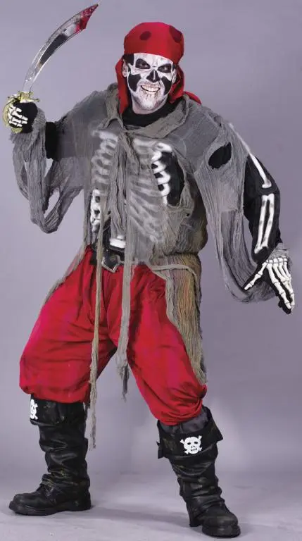 Come Explore The SeasCostume Includes: Shrit with bones, tattered gauze shirt, pants, bone gloves, head scarf, 2 belts, and boot tops. Manufacturer’s suggested washing instructions included.Available size: