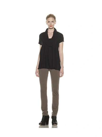 Medium-weight cotton-blend, cowl neck with contrasting weave, rolled hem and cuffs