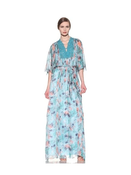 Catherine Malandrino Women’s Tie-Waist Kaftan (Tropical Flower P