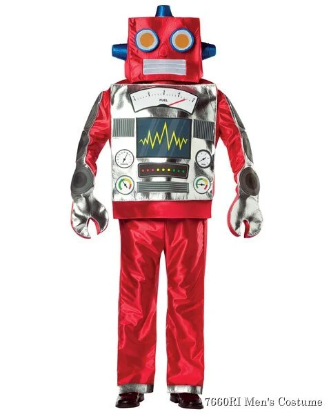 Look like a millennial robot in the Deluxe Retro Robot Adult Costume. In the 80s, people hypothesized that by the year 2000, there would be flying cars, everyone would wear metallic silver clothes and have personal robots to run errands and make dinner. The Retro Robot costume is representative of toys of the future and features shiny red pants with metallic silver cuffs, a red square robot head with three blue knobs, large blue and orange eyes and a mesh mouthpiece so you can see through and avoid any party fouls. The shirt of this ensemble has red and grey sleeves with pincher style hands. The chest of the shirt is a square silver box with printed dials, line chart and many other robot inspired features. For those attending Halloween costume parties together, consider purchasing additional humorous or robot inspired costumes so you can attend as a themed pair.