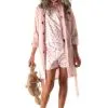 Bone Print DressGlovesHatTightsBecome a skeleton sweetie in this cute girls costume! The classic Halloween costume includes a dress that is made from a polyester and spandex blend. The top is lined with elastic for a secure and comfortable fit. Black and white stripes cover the torso and two black bows with purple ribbons are attached at the top. The chest is accented with a female skull applique that features a hair bow, flower eyes and a smile. The lower portion of the torso and the bows are covered in black netting for a punk appearance. The black skirt has two layers of mesh trimmed in white ribbon (please note the skirt varies slightly from the picture). Bones are screenprinted on the black fingerless gloves and tights while a mini top hat completes the costume. The black hat has a mesh flower accent and is attached to a headband for easy wear. Shake, rattle and roll your bones in this fun skeleton costume!
