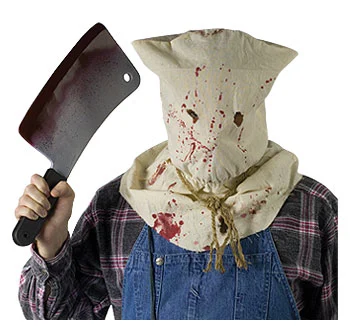 Horror HoodThis Horror Hood Mask is a scary and inexpensive Halloween costume. It consists of a cloth mask that slips on over the head and has slits for the eyes. It is embellished with a rope around the neck and fake blood spots. Add one of our toy weapons to complete your Halloween look.