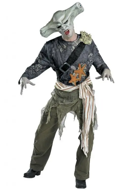 Product Includes: Tunic top with shoulder strap and buckle, sash, character mask, and 2 sculpted sea creatures.
