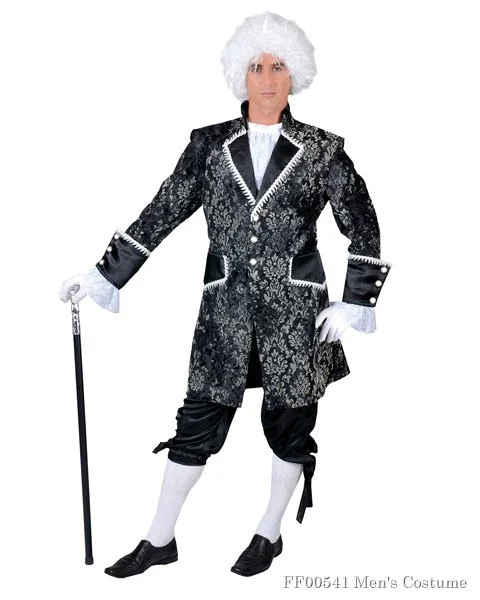 Carnival costumes are great for Halloween but they are also worn for Mardi Gras and the two weeks leading up to Mardi Gras, known as Carnival. This Venetian Signore Adult costume is elaborate and flamboyant which is exactly what you want in a men’s carnival costume. This costume comes with short black satin knickers and a long, brocade style coat with fancy cuffs. The ascot is also included. Venetian costumes are typically worn with Venetian Masks. This one is shown with a powdered wig which is sold separately. This costume would also be a good choice for portraying a historical figure of the time such a Mozart or Beethoven. * Includes a velvet jacket, pants and neckpiece. Wig not included. * Walking cane, gloves and socks sold separately.