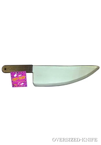 Make your costume look sharp with this oversized fake knife. The toy knife is hollow plastic. It has a black handle with wood grain details. The rounded gray blade is dull. Add this creepy cutlery accessory to any of our scary costumes for extra scariness!