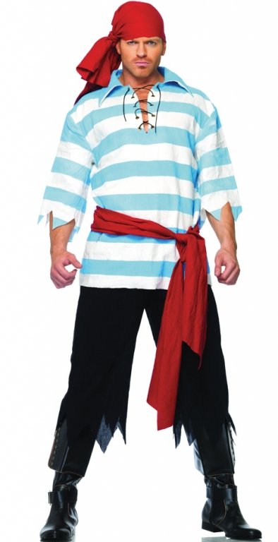 Includes: Striped linen shirt, tattered pants, waist sash, and head scarf.