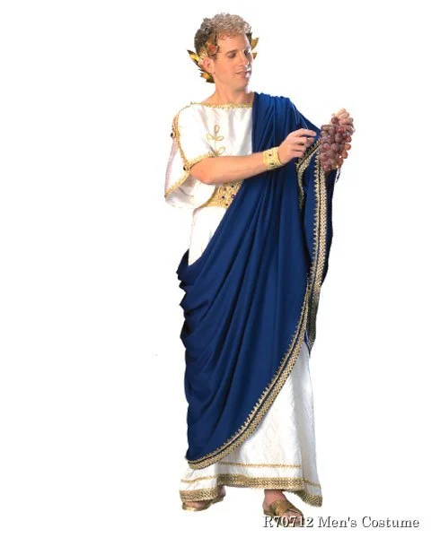 Be a ruthless ruler in the Regency Collection Nero Men’s Costume. Nero was known for his diplomacy, trade, and increase in cultural aspects of the empire. He had theaters built and promoted athletic games. He was also known to burn captured Christians. The ruthless ruler Nero Halloween costume features a white short sleeved floor length robe. The bottom of the robe is trimmed in gold accents while the sleeves are slit up the sides for ease of movement. The sleeves are also trimmed in gold and match the gold belt used to cinch in the waist. The most regal part of the Nero ensemble is the royal blue drape that is slung from the shoulder, across the torso to the floor. This drape is also trimmed in ornate gold colored accents. To create an even better Nero costume, consider purchasing a gold wreath style head piece or Roman inspired sandals.