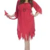 Bone Print DressGlovesHatTightsBecome a skeleton sweetie in this cute teen costume! The classic Halloween costume includes a dress that is made from a polyester and spandex blend. The top is lined with elastic for a secure and comfortable fit. Black and white stripes cover the torso and two black bows with purple ribbons are attached at the top. The chest is accented with a female skull applique that features a hair bow, flower eyes and a smile. The lower portion of the torso and the bows are covered in black netting for a punk appearance. The black skirt has two layers of mesh trimmed in white ribbon (please note the skirt varies slightly from the picture). Bones are screenprinted on the black fingerless gloves and tights while a mini top hat completes the costume. The black hat has a mesh flower accent and is attached to a headband for easy wear. Shake, rattle and roll your bones in this fun skeleton costume!