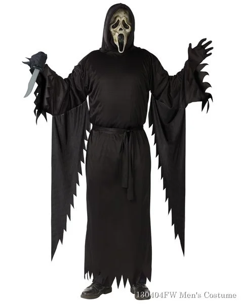 The Men’s Zombie Ghost Face Costume is the officially licensed costume from the movie Scream 4. It is an exclusive costume of Fun World, Inc. In Scream 4 it has been 10 years since the last murders and Sidney Prescott has finally put her life back together. Just when she thinks better times are ahead, the ghostface killer returns. Director Wes Craven brings the Ghostface to life in Scream 4 and you can bring him to life this Halloween in the Men’s Zombie Ghost Face costume. This particular ghost face has scars and stitching on the mask which is a variation of the all white mask. Scare the wits out of all your friends in this classic men’s Halloween costume.